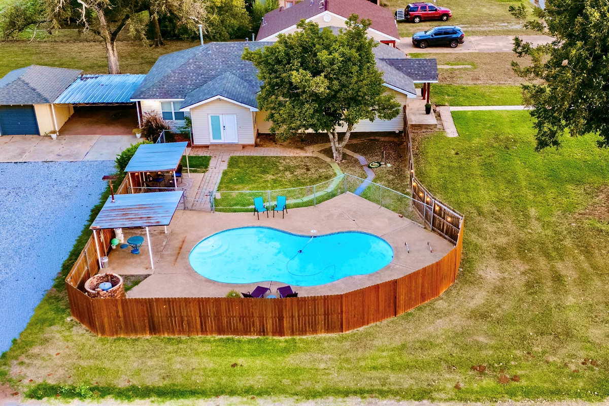 The Drover House is a large 5 bed, 2 bath home with a private swimming pool located just 5 blocks from USAO College Campus. The property is newly remodeled down and features all the amenities you need for a comfortable stay including a private in-ground swimming pool . Located on a very quiet street with easy access to anything in Chickasha!